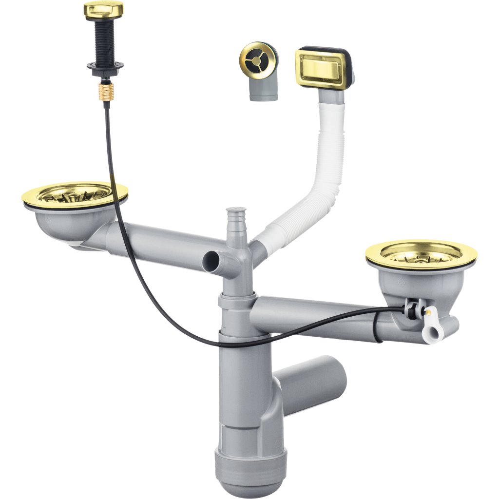Deante, prostorově úsporný-sifon pro granitové kuchyňské dřezy 1,5/2-komorové, 3,5" s automatickou zátkou odpadu, zlatá, ZXY_Z911