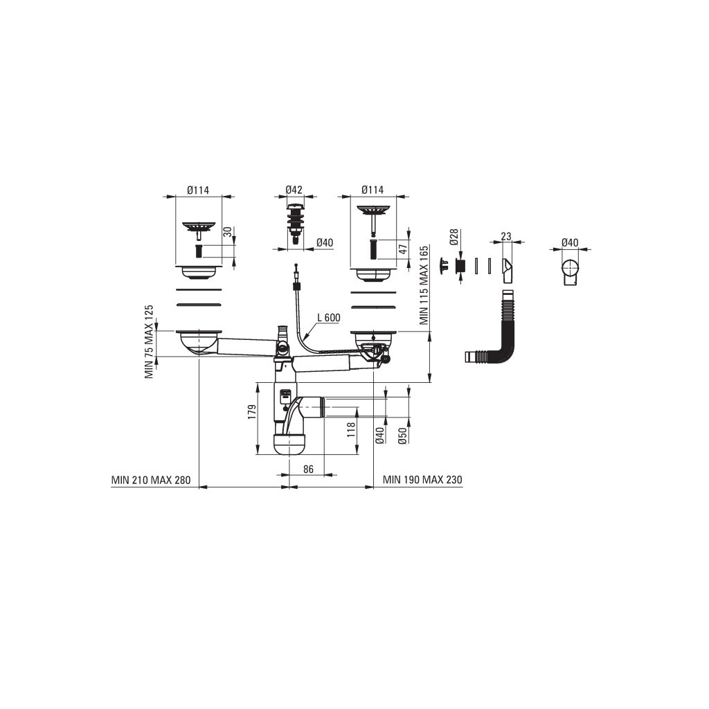 - Typ: úsporný sifon pro 1,5 a 2-komorové granitové dřezy 3,5" s automatickou zátkou