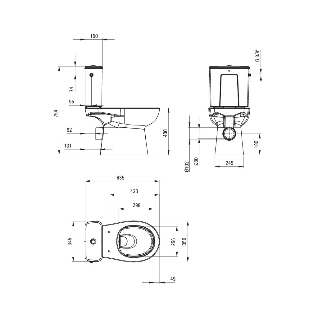 Deante, WC kombi 635x350x755 mm + toaletní WC sedátko, bílá lesklá, DEA-CDFD6RPS