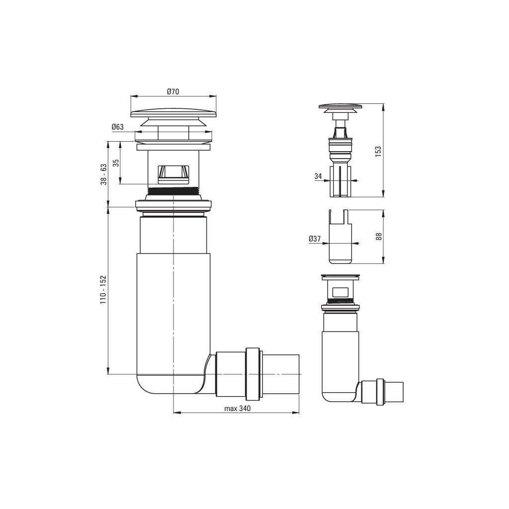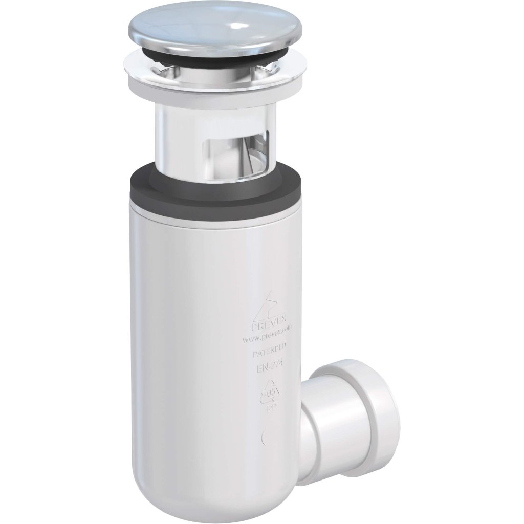 Deante, zátka typu Click-clack pro umyvadlo s přepadem včetně sifonu, čistitelná shora, kulatá, chromová, NHC_010C