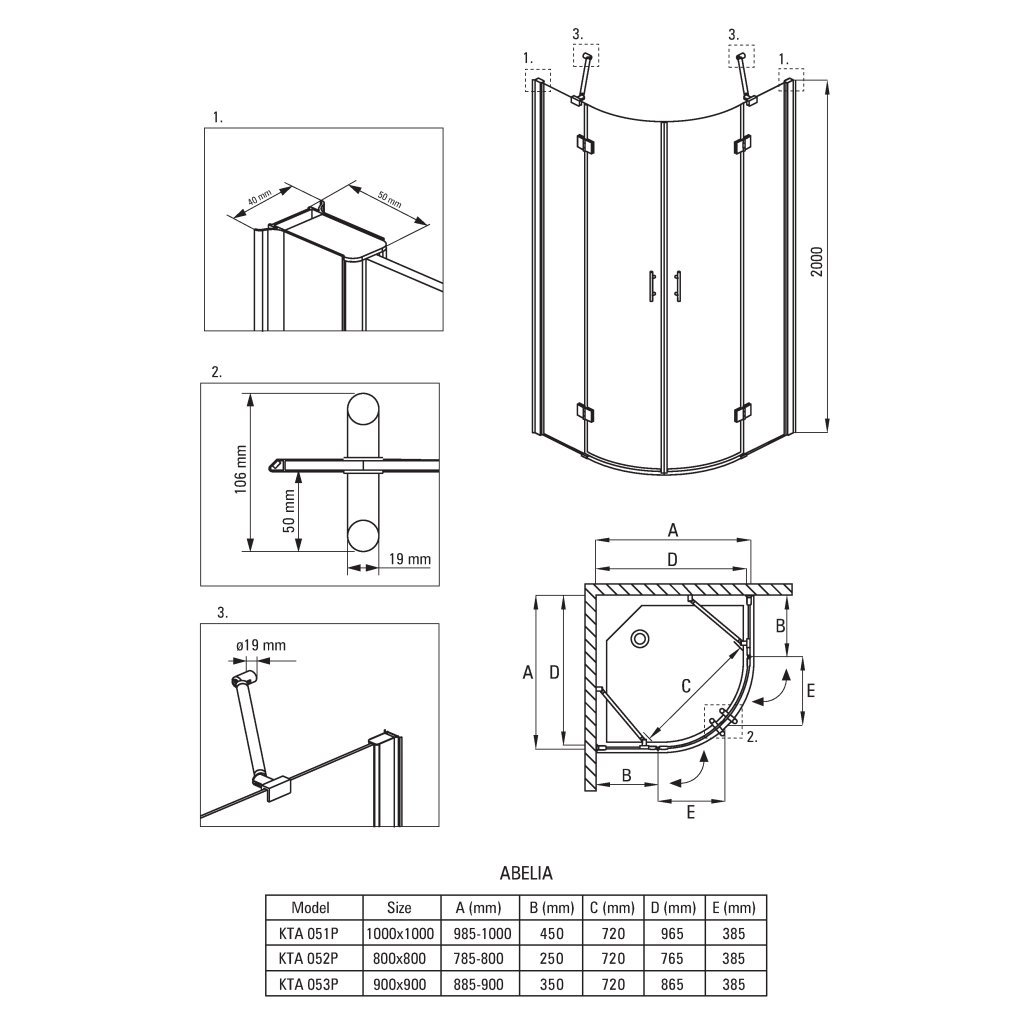 - Typ: čtvrtkruhový sprchový kout s výklopnými dveřmi