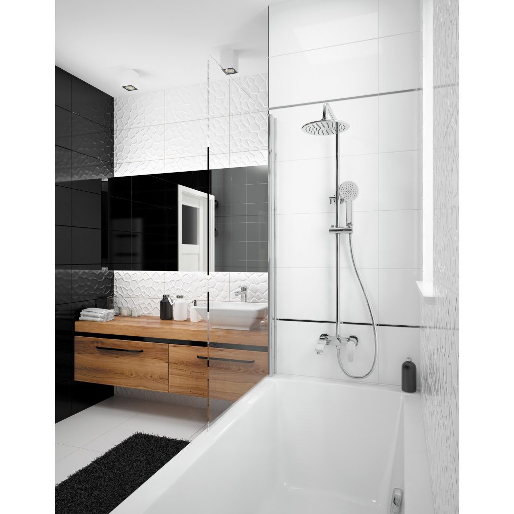 Vanová zástěna ze série Alpinia je mimořádně elegantní a praktická nabídka, která se bude hodit zejména v malé koupelně, kde není místo pro samostatný sprchový kout a vanu. Rozdělovač místnosti vyrobený ze 6 mm bezpečnostního tvrzeného skla pokrytého aktivním krytem je řešením, které se snadno instaluje a čistí a zároveň je velmi univerzální, pokud jde o interiérový design. Obrazovka o šířce 80 cm se otevírá dovnitř a díky průhlednému sklu a chromovým povrchům se tento design hodí do klasických i moderních aranžmá a umožní vám bez problémů používat sprchu ve vaně. Elegantní montážní prvky, oboustranné dveře, které lze namontovat vpravo a vlevo, a přesné zavírání díky zvedacím pantům jsou dalšími výhodami tohoto produktu.