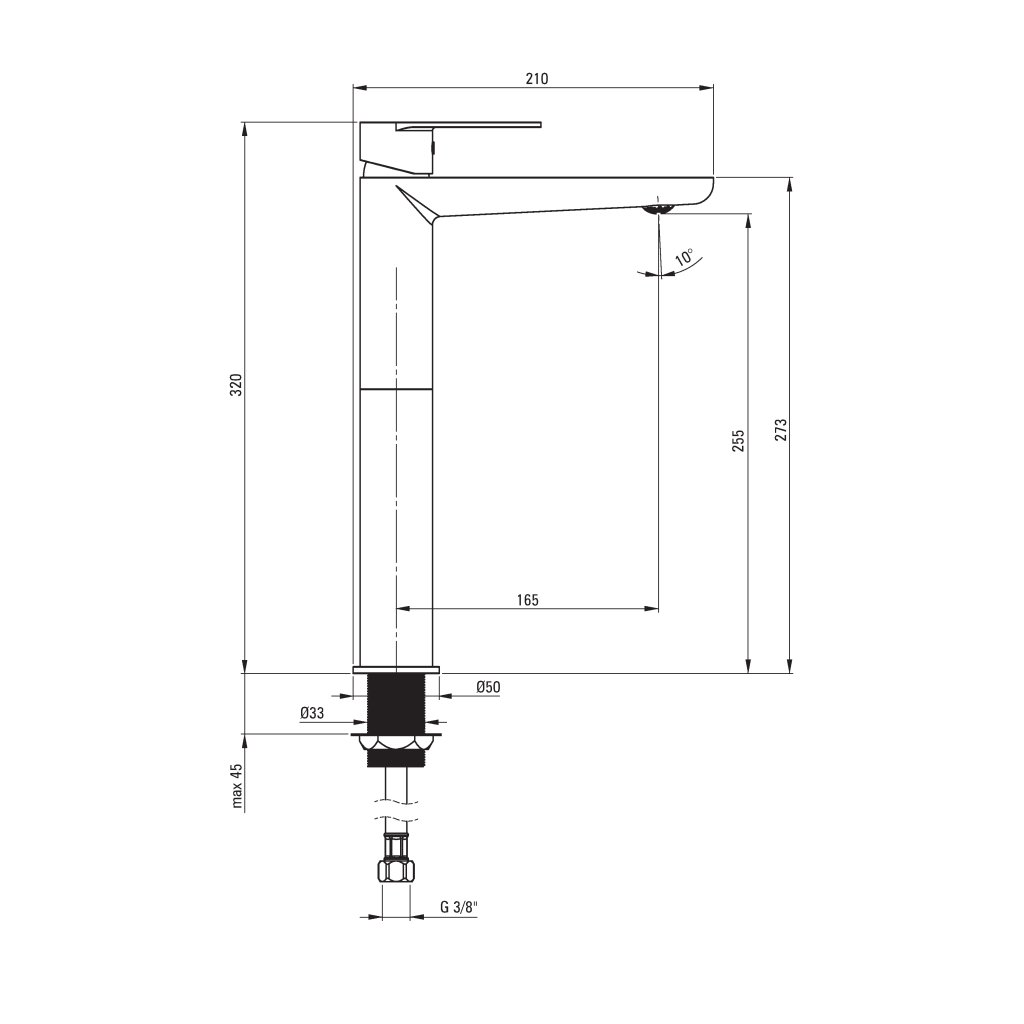 - Rozsah výtoku: 165 mm