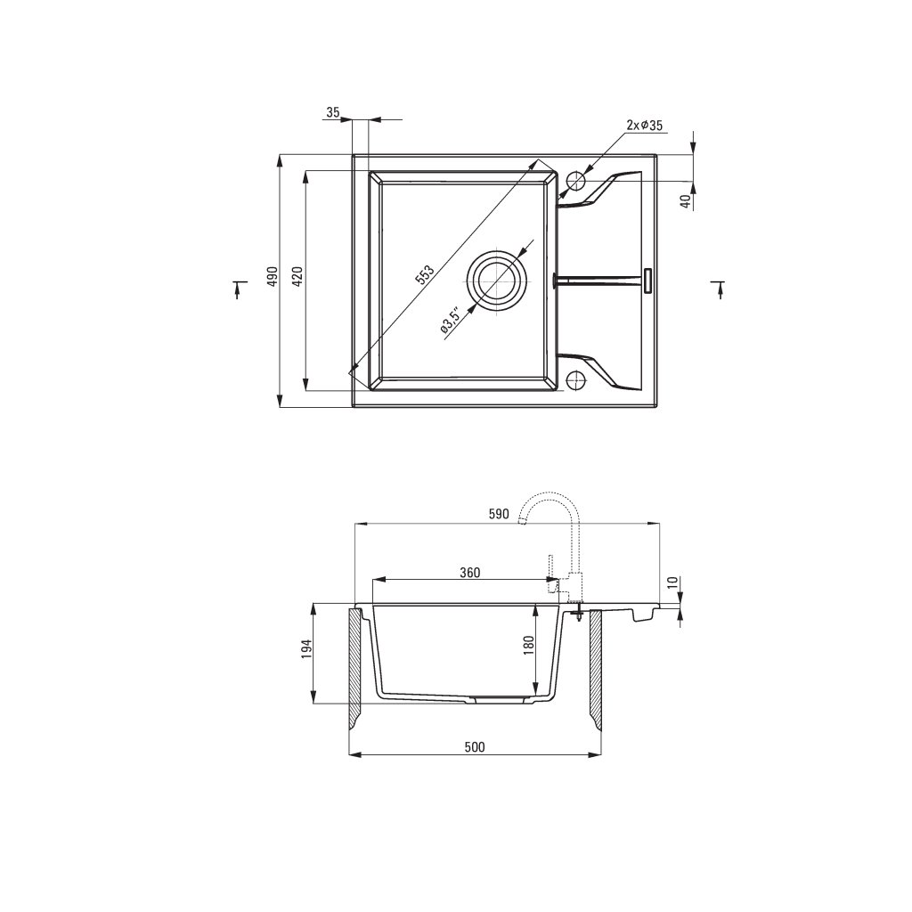 - Rozměry dřezu: 590 x 490 x 194 mm