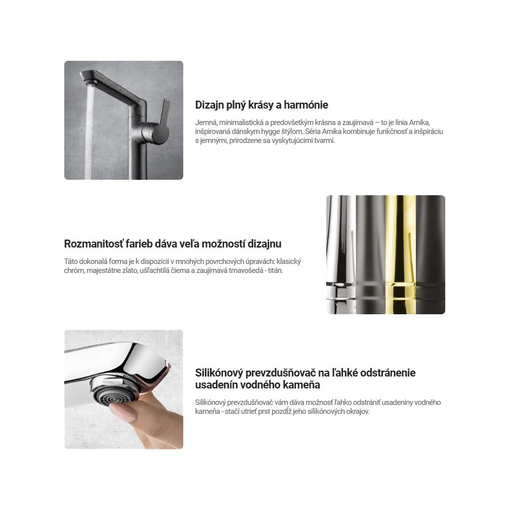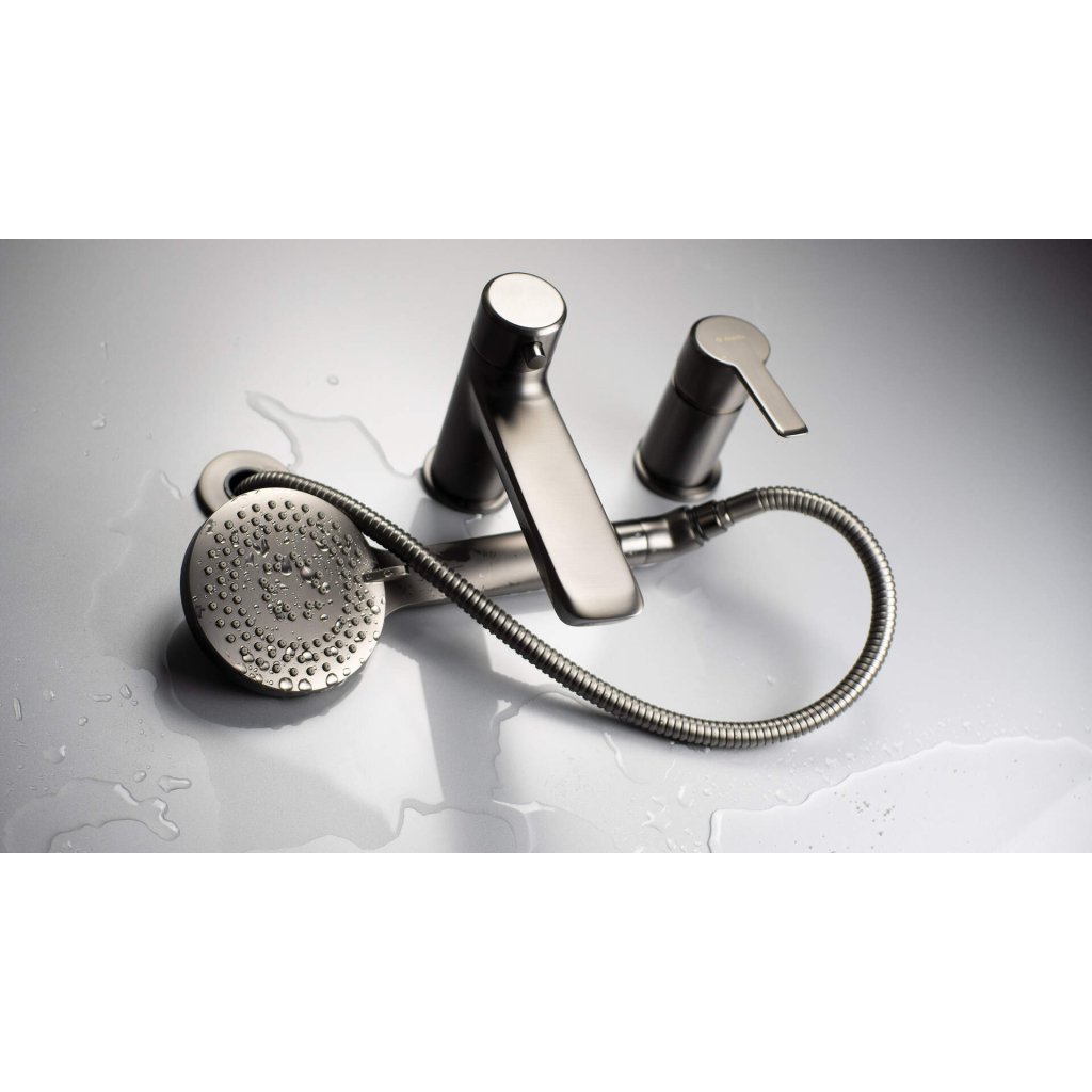 Tato moderní 3-otvorová vanová baterie vyrobená z masivní mosazi a dokončená v inovativní titanové barvě je ztělesněním odolnosti a stylu. Jeho ústředním prvkem je praktický funkční přepínač, který usnadňuje plynulé přepínání průtoku vody mezi výtokem a ruční sprchou. Vanová baterie Arnika dokonale zapadá do klasického i moderního koupelnového stylu a dodává elegantní výraz a funkčnost.