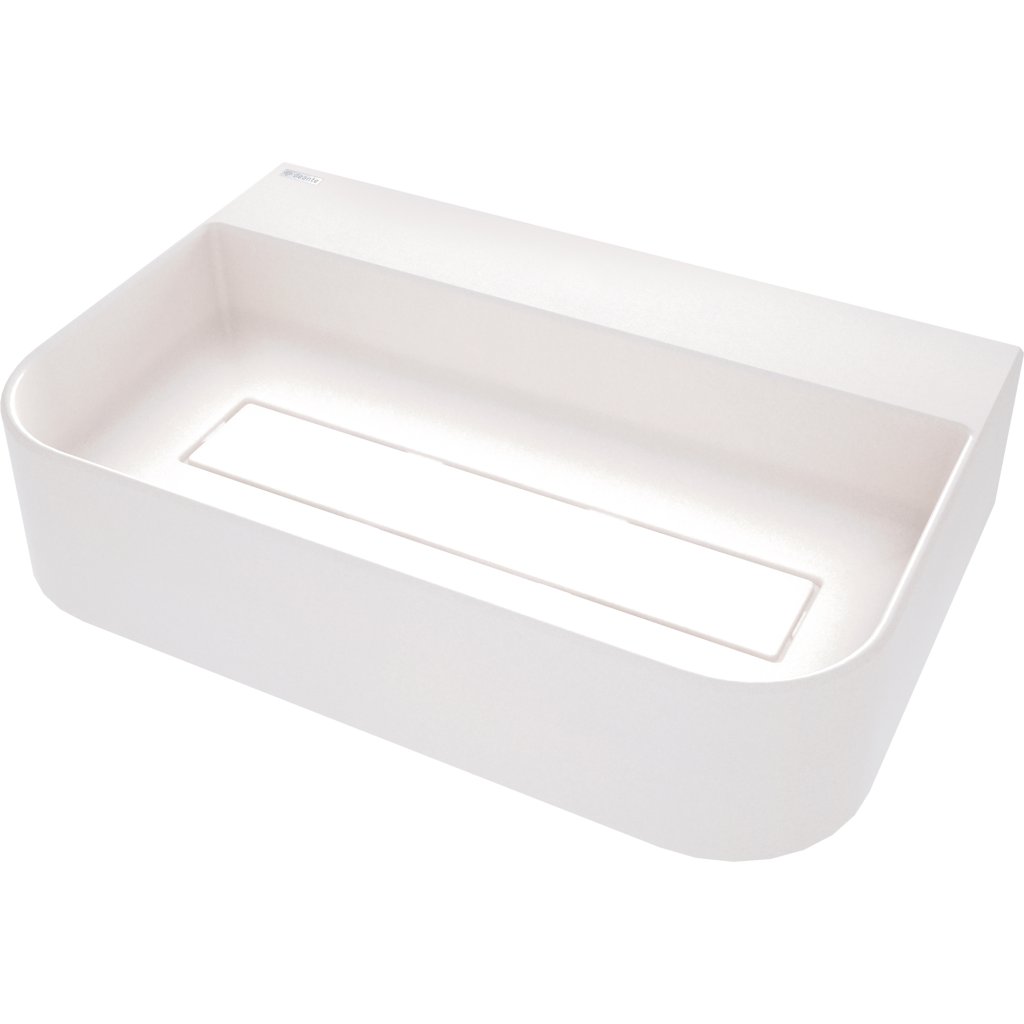 Žulové umyvadlo s bílou přepadovou mřížkou se vyznačuje moderním a elegantním designem. Na přední straně má zaoblené hrany, což mu dodává měkký, estetický vzhled a zvyšuje komfort používání. Je vyroben ze žuly Deante, je odolný vůči nárazům, vysokým teplotám, změně barvy a tepelnému šoku. Díky svým hydrofobním vlastnostem odpuzuje molekuly vody, což usnadňuje udržování čistoty. Povrch umyvadla je obohacen o ionty stříbra, které poskytují antiseptický účinek. Žulová přepadová mřížka, přesně sladěná s umyvadlem, zdůrazňuje eleganci a konzistenci celé formy.