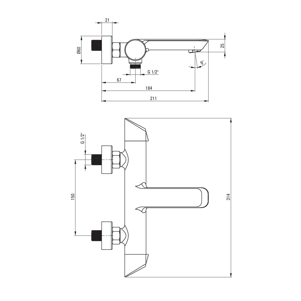Tělo nástěnné vanové baterie vyrobené z mosazi zajišťuje spolehlivost a zaručuje bezproblémový provoz produktu. Pokrytí baterie zlatou vrstvou chrání před korozí a zakalením. Keramické kartuše nové generace zajišťují dlouhou životnost a odolnost baterie.