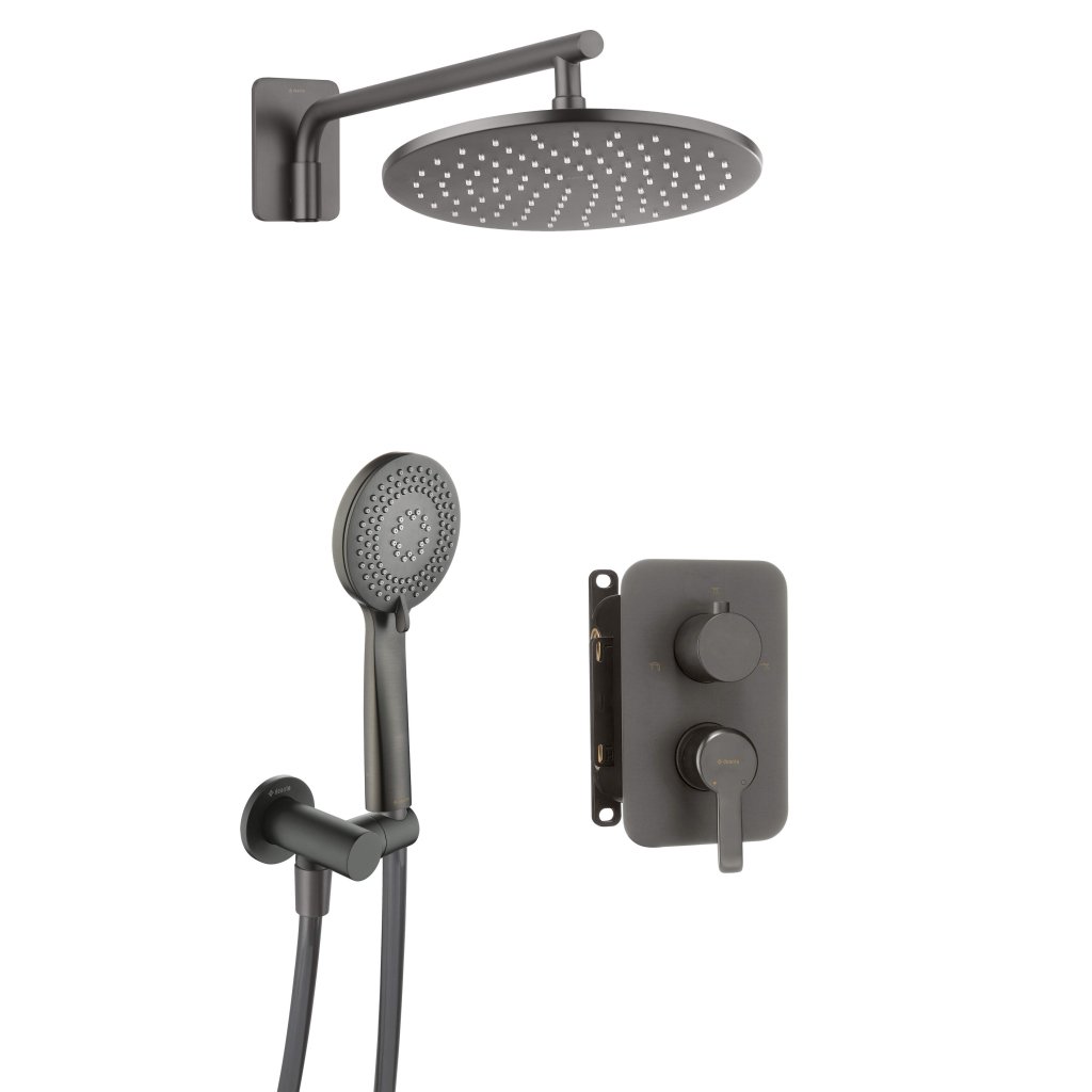 Deante Arnika, sprchová souprava pod omítku s hlavovou a ruční sprchou, páková baterie s krabicovým tělesem BOX, titanová, BXYZDQAM