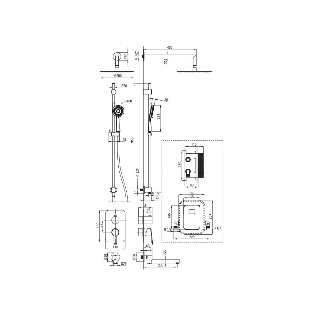 Podomítková sada Arnika se skládá ze sprchového sloupu s ruční sprchovou hlavicí a dešťovou hlavicí, skládací vanové výlevky a pákové baterie se sprchovým přepínačem. Držák ruční sprchové hlavice lze přesunout do libovolné polohy na sprchovém sloupu. Sprchová hlavice a dešťová hlavice jsou vybaveny systémem Anti-Calc, který usnadňuje jejich čištění od sedimentů a vodního kamene. Výtok lze během koupání složit rovnoběžně se stěnou, abyste získali další prostor. Sada je dodávána v titanové barvě.