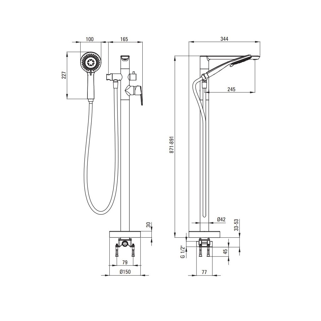 - Typ: volně stojící vanová baterie s ruční sprchovou soupravou