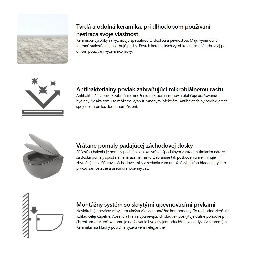 - Typ příruby: Bez-okrajová WC mísa (Rimless oplachování)