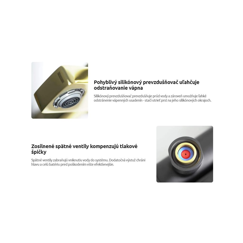 Baterie je vybavena zpětnými ventily, díky kterým smíšená voda neustupuje do zařízení