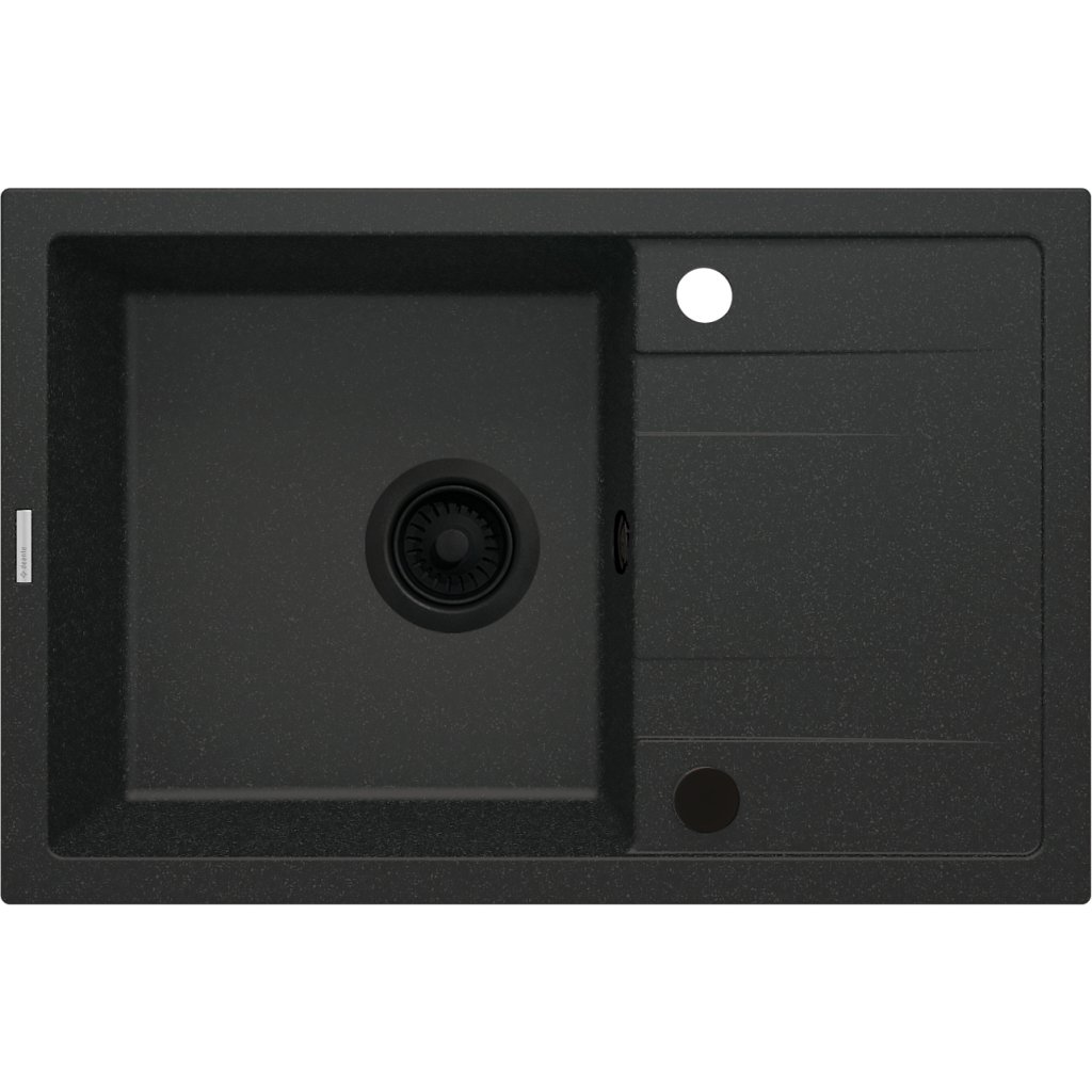 Granitový dřez Deante Corio ZRC_G113 je vyroben z kompozitu tvořeného až z 80% přírodního křemičitého písku. Tento materiál zajišťuje extrémní pevnost, odolnost vůči vysokým teplotám, mechanickému poškození i tepelným šokům. Povrch dřezu je hydrofobní, což znamená, že odpuzuje vodu a nečistoty – údržba je výrazně jednodušší a dřez si zachovává vzhled dlouhá léta. Model je jednokomorový, doplněný o velký integrovaný odkapávač, který je ideální pro sušení nádobí, zeleniny či přípravu jídla. Elegantní grafitové metalické provedení je vhodné do moderních i industriálních kuchyní.