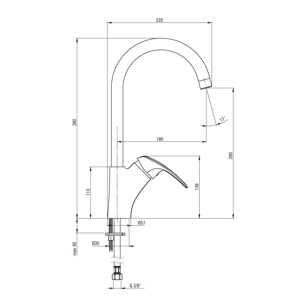 - Typ: stojánková dřezová baterie s otočným ramenem ve tvaru "U"
