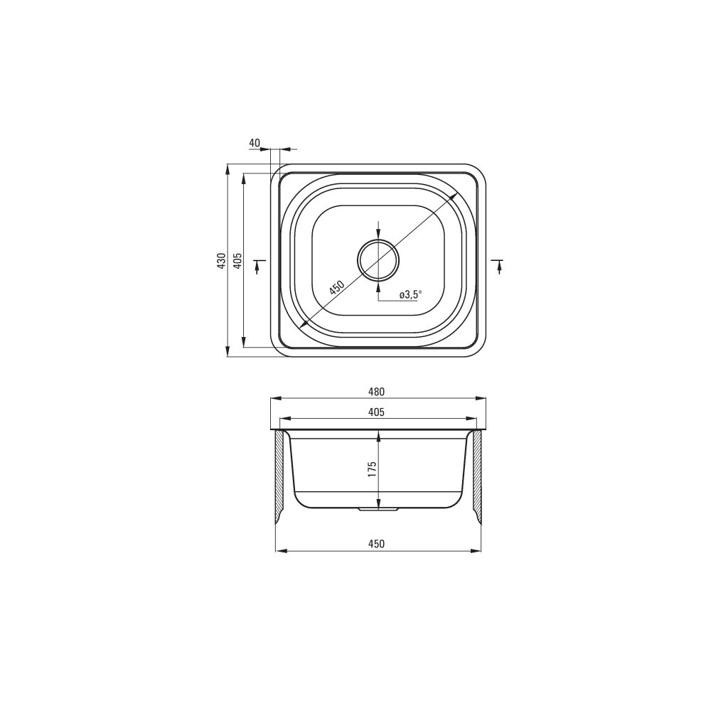 Deante Doppio, nerezový dřez na desku 1-komorový B/O 480x430x180 3,5" + sifon, vzor satyna, ZEN_0103