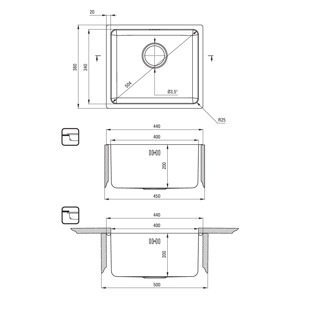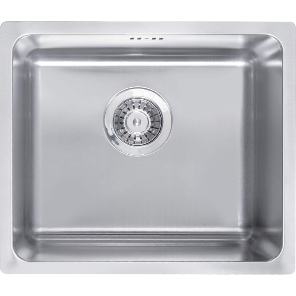 Deante Egeria, nerezový dřez pod desku 1-komorový B/O 380x440x200 3,5" + prostorově úsporný sifon, vzor satyna, ZPE_010A