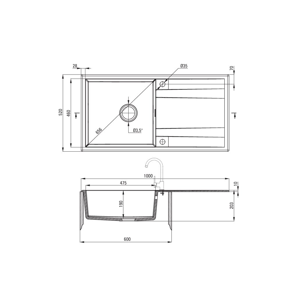 - Typ: granitový dřez na desku + prostorově úsporný sifon