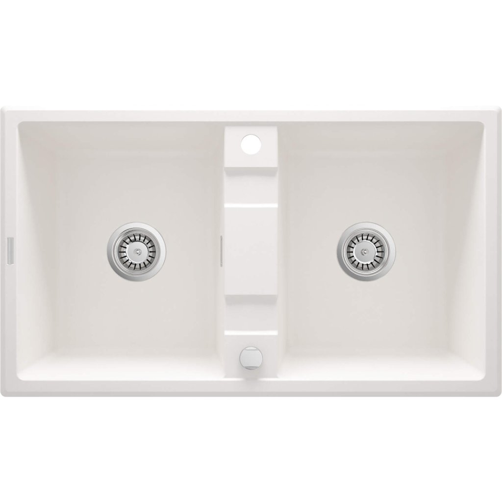 Deante Eridan, granitový dřez na desku 860x500x220 mm B/O, 3,5" + prostorově úsporný sifon, 2-komorový, bílá, ZQE_A203