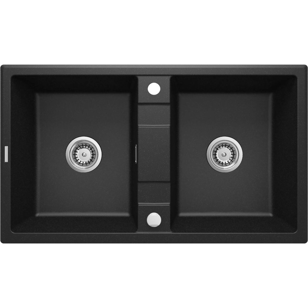 Deante Eridan, granitový dřez na desku 860x500x220 mm B/O, 3,5" + prostorově úsporný sifon, 2-komorový, grafitová metalíza, ZQE_G203
