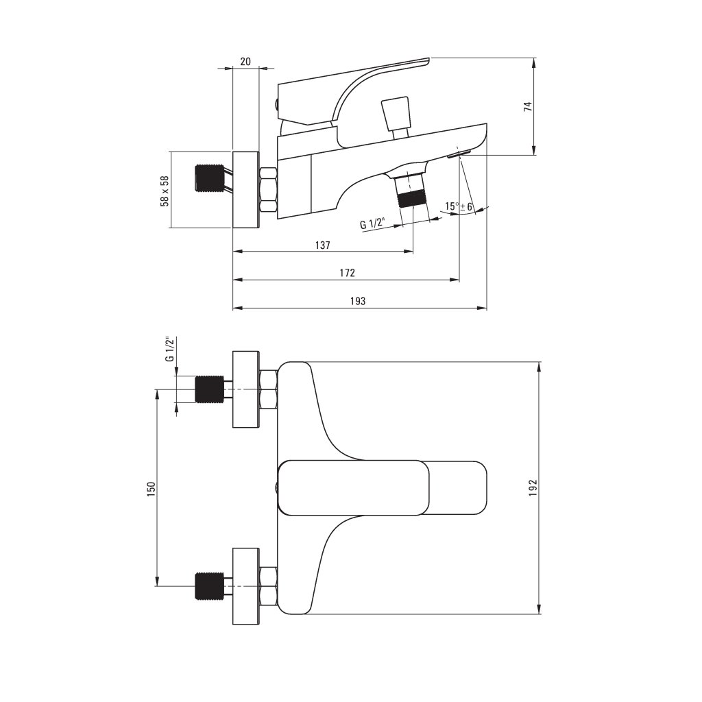 Deante Hiacynt, nástěnná vanová baterie, chromová, BQH_010M
