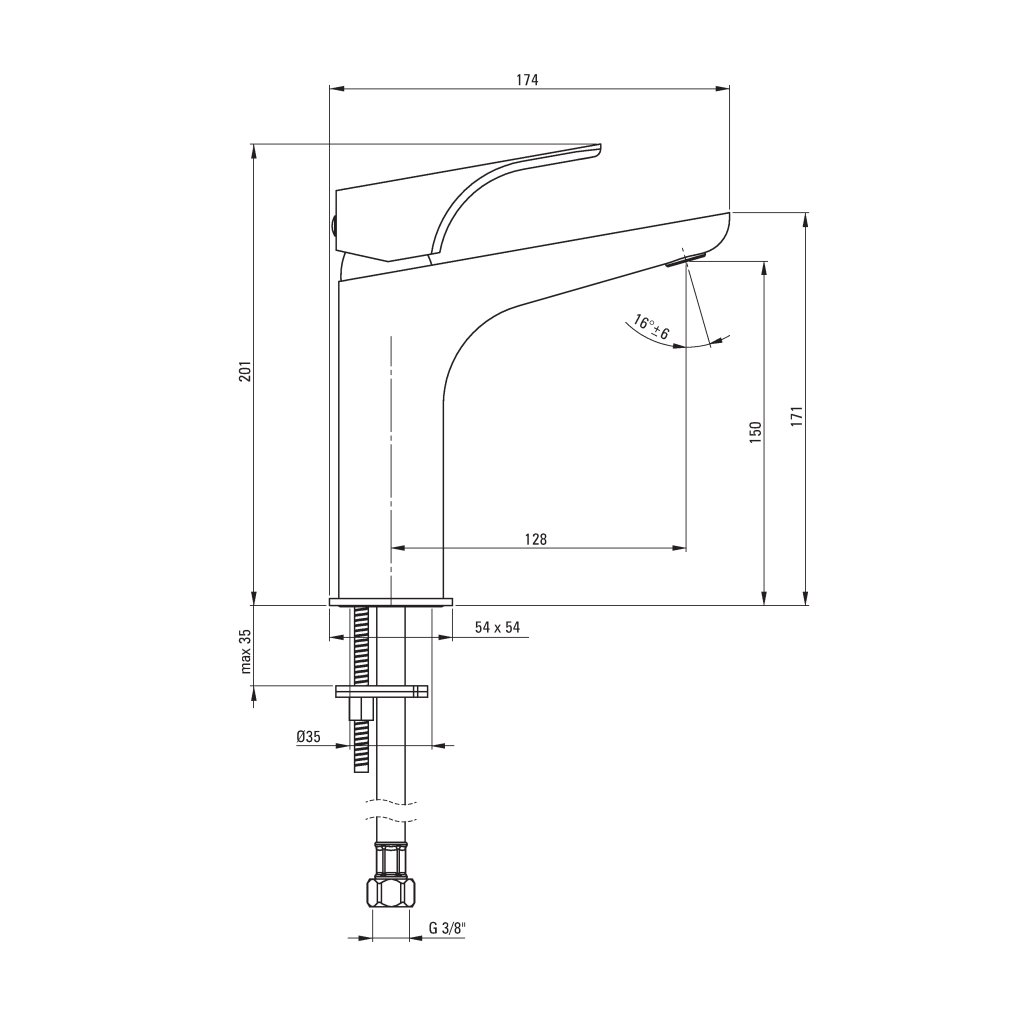 - Instalační závit: 3/8''