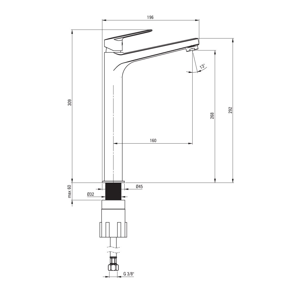 - Typ: vysoká umyvadlová baterie + kovová zátka Click-Clack s přepadem