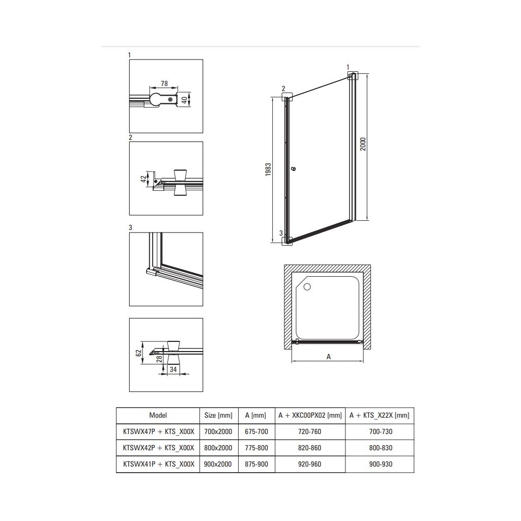 Poznámka: pro vytvoření rohové sprchové kabiny lze dokoupit sprchové dveře ze série KTS nebo sprchovou skleněnou stěnu série KTS Walk-in
