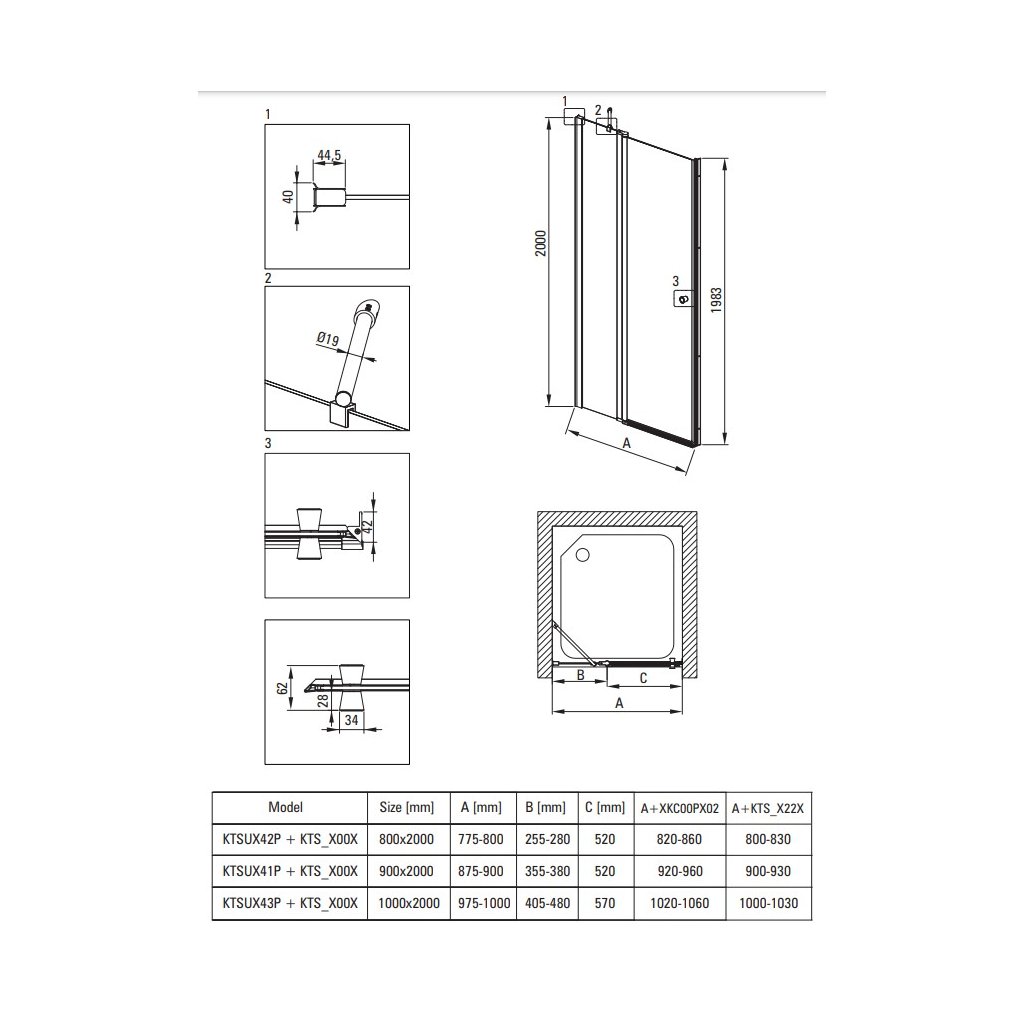 - Důležité! Pro instalaci sprchových dveří do otvoru si nezapomeňte koupit příslušný profil KTS_N00X nebo KTS_000X