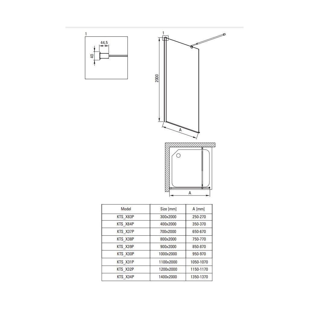 Montáž: | doplniť dverami KTS, doplniť Walk-In zástenami KTS, možnosť montáže na dve pevné steny, možnosť montáže s pevnou stenou |