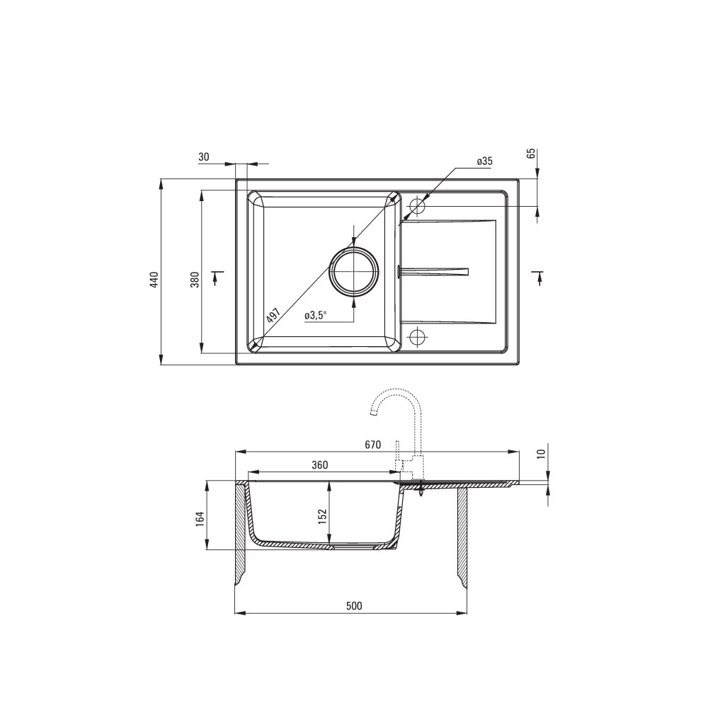 - Typ: 1-komorový dřez na desku + dřezová baterie