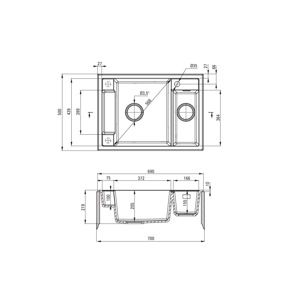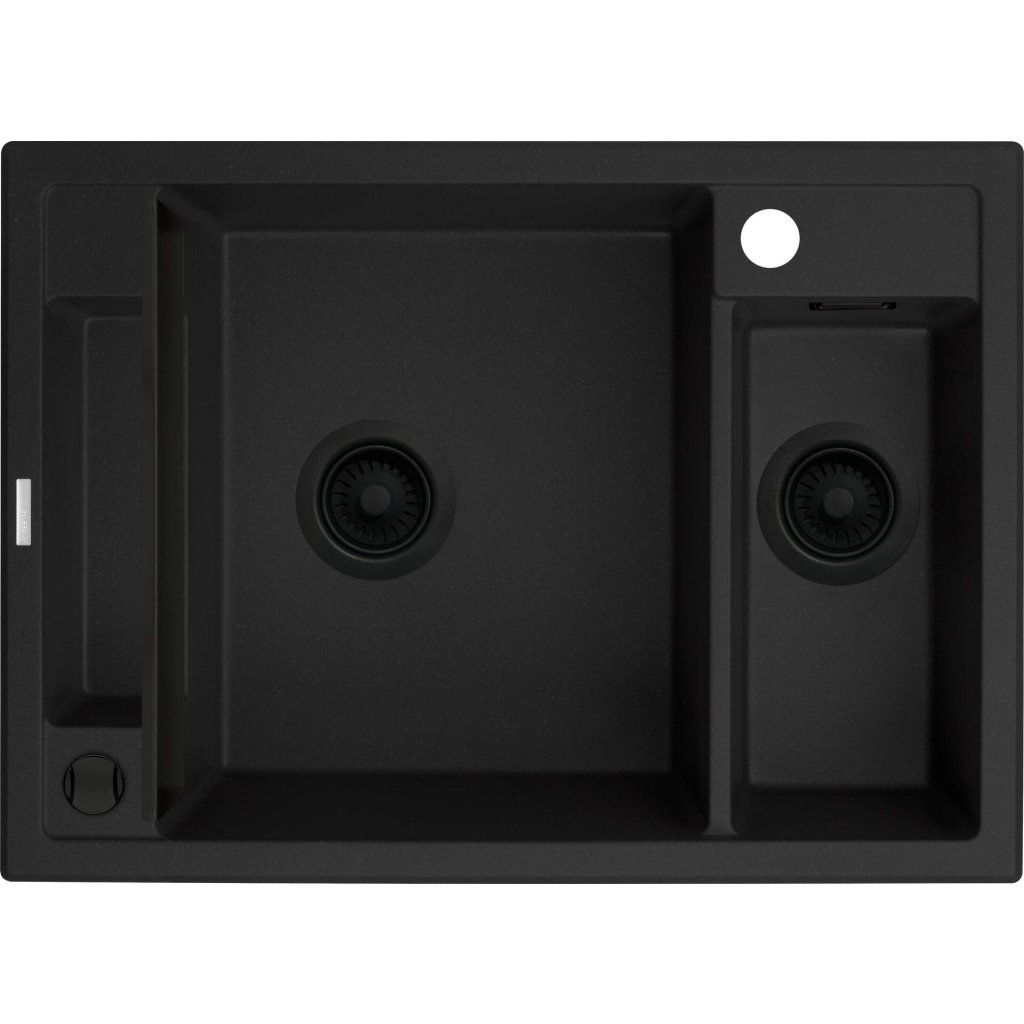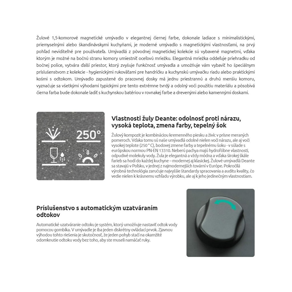 Deante Magnetic, granitový dřez na desku 690x500x219 mm, 3,5" + prostorově úsporný sifon, 1,5-komorový, černá, ZRM_N503
