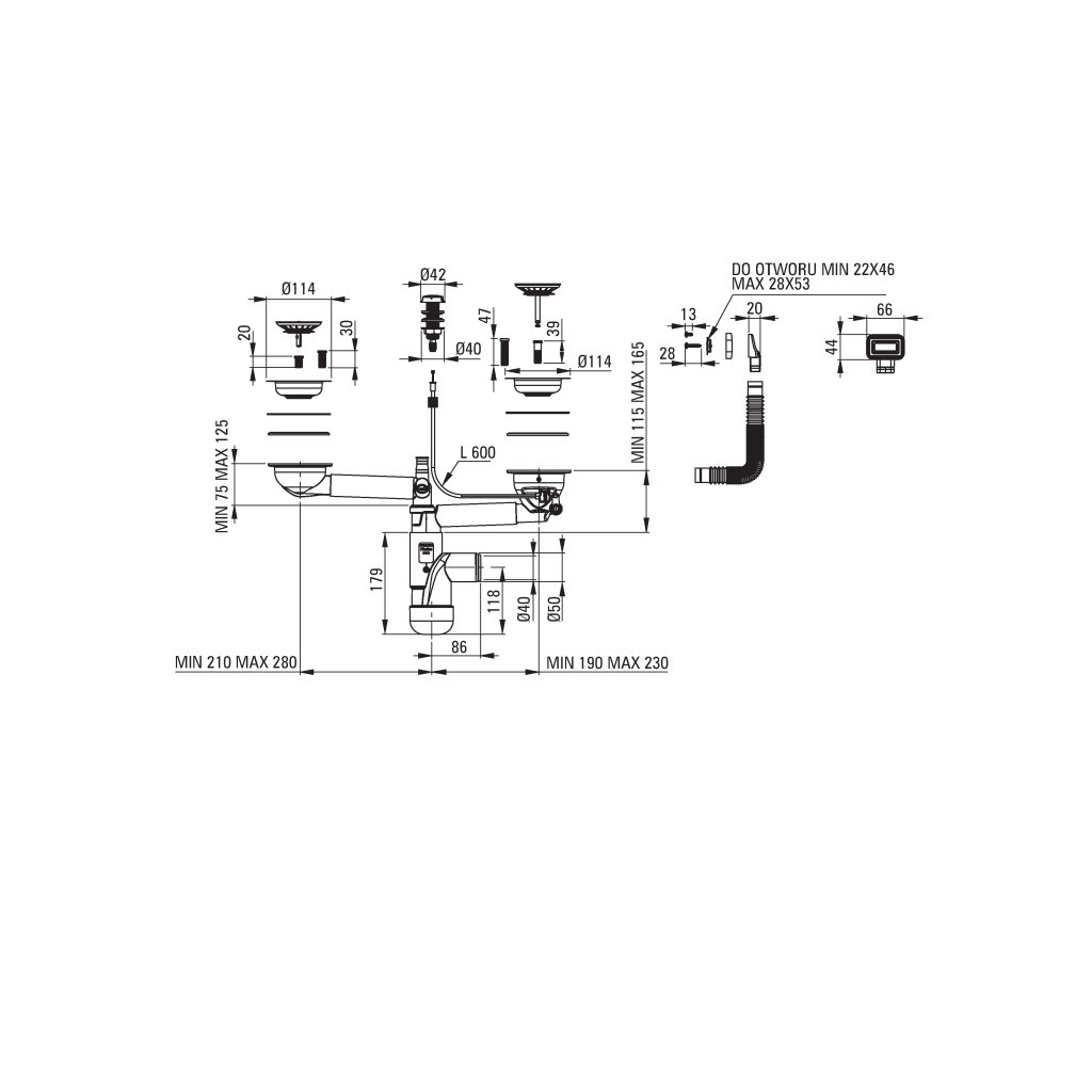 - Prostorově úsporný sifon, který usnadňuje např. třídění odpadu