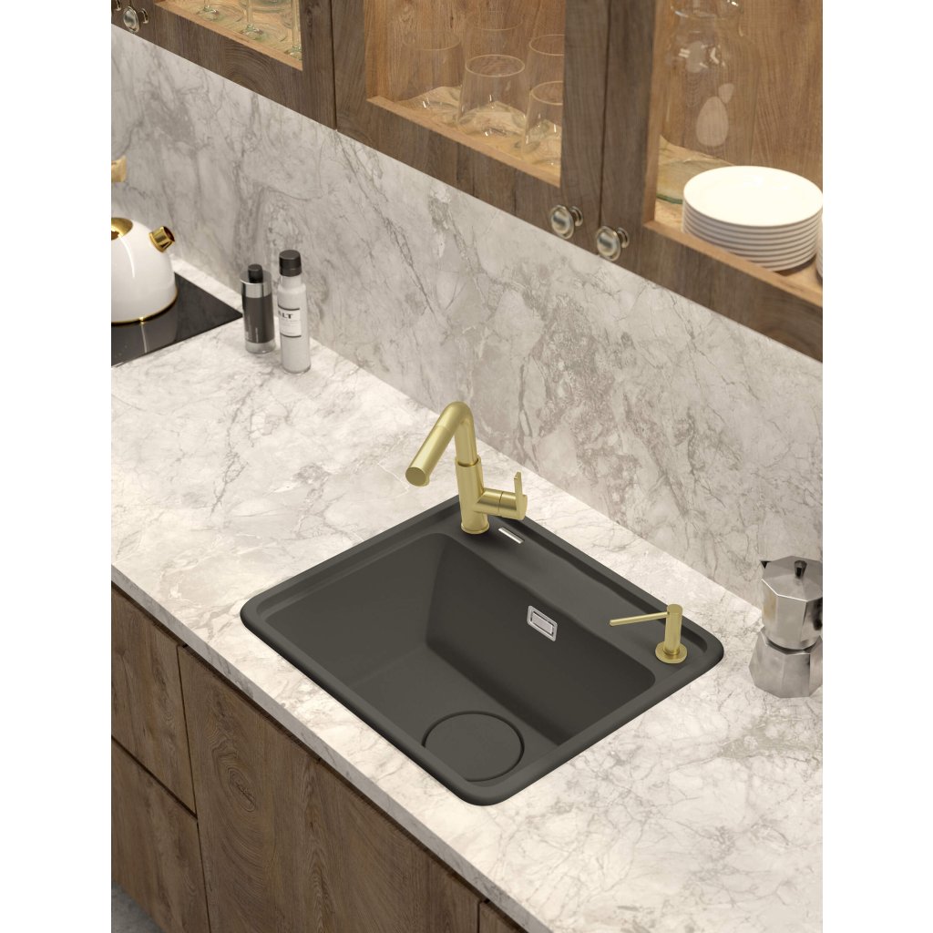 Deante Momi, 1-komorový granitový dřez 500x440x230 mm s úsporným sifonem, antracitová, DEA-ZKM_T103