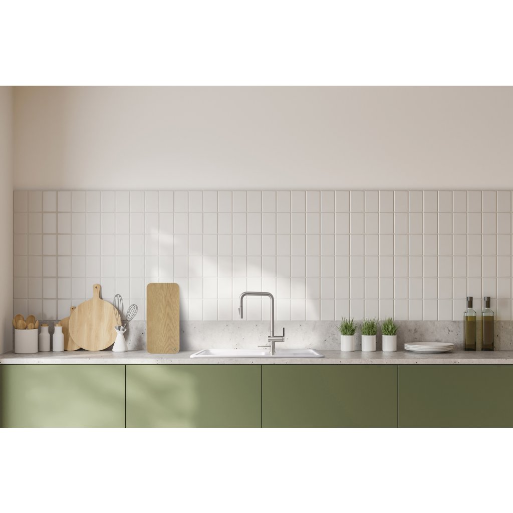 Neutrální bílá barva, která ladí se všemi dekory kuchyně