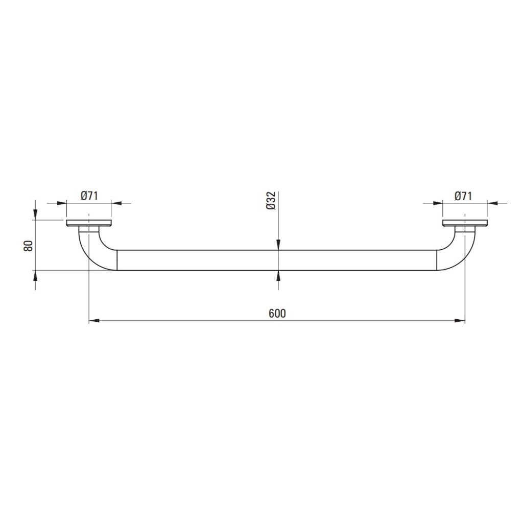 Držák na zeď vyrobený z nerezavějící oceli o délce 60 cm. Rozety o průměru 71mm vyrobeny z chromovaného plastu. Včetně montážní soupravy na tvrdý podklad (plné cihlové/betonové stěny). Maximální nosnost 150 kg. Výrobek je zdravotnická pomůcka.
