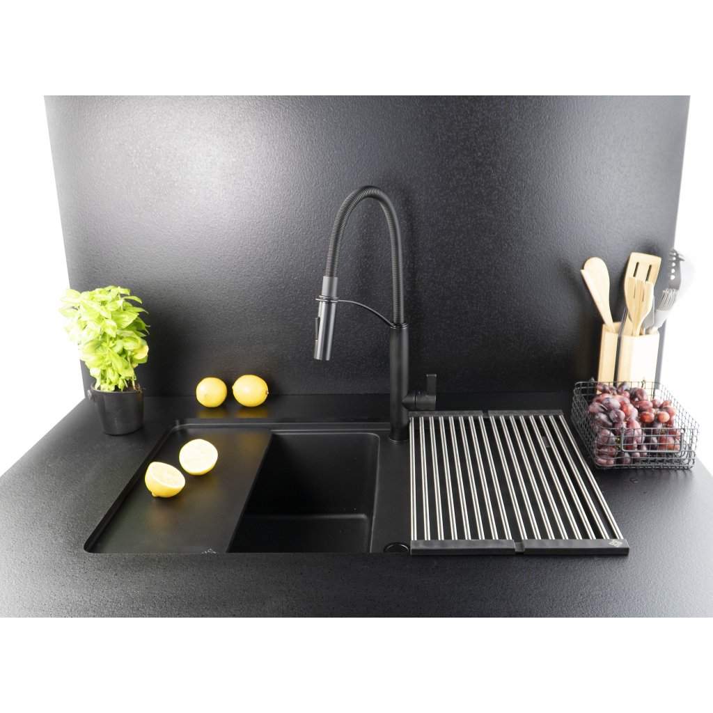 Deante příslušenství, skládací odkapávač pro Deante kuchyňské dřezy 470x300 mm, černá-ocelová, DEA-ZZH_02NM