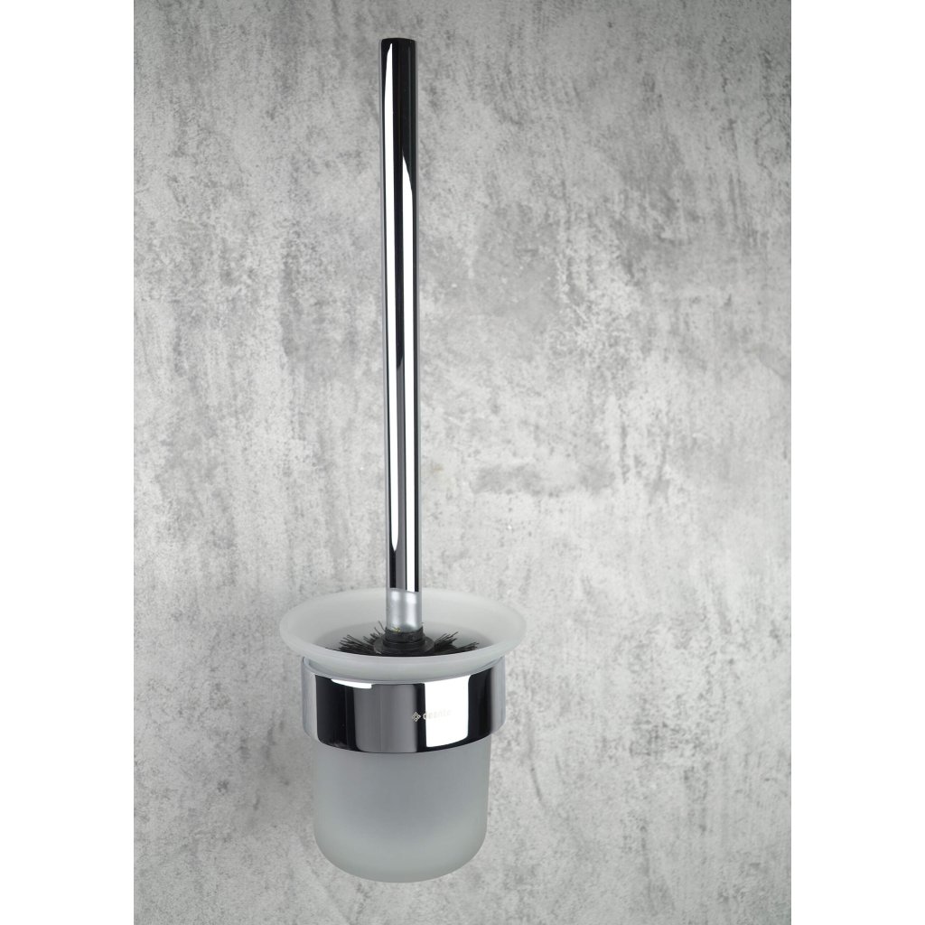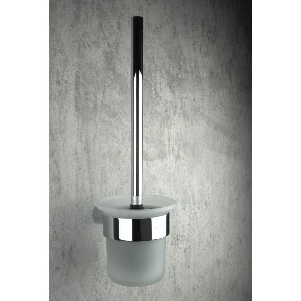 WC kartáč pochází ze série Round. Nádobka z mléčného skla a chromová povrchová úprava kartáčku dělají tento doplněk vhodný téměř do každého koupelnového zařízení. Kartáč je určen k montáži na zeď, vyroben z mosazi a nerezové oceli, vydrží roky. Perfektně se hodí k ostatním doplňkům ze série Round v chromové barvě.