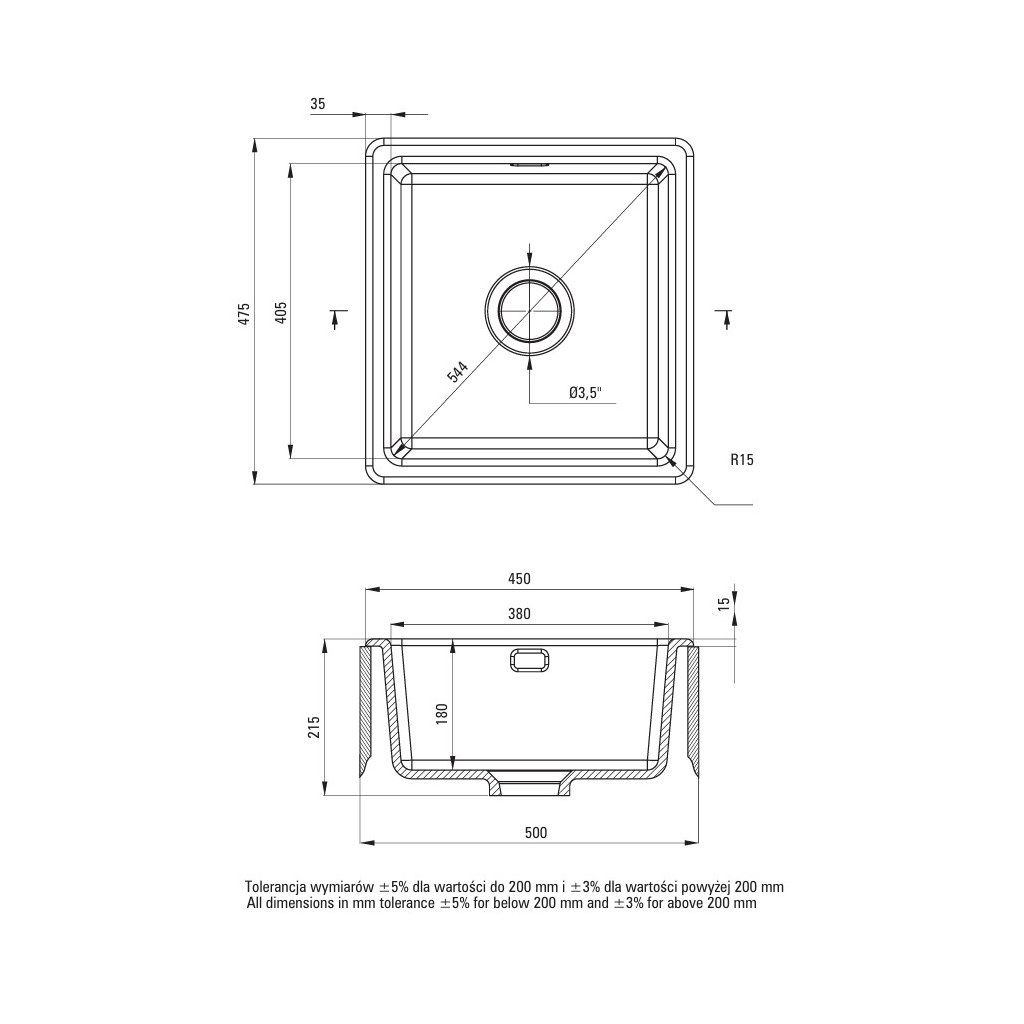 Deante Sabor, 1-komorový keramický dřez 450x478x215 mm, bílá, DEA-ZCB_A103