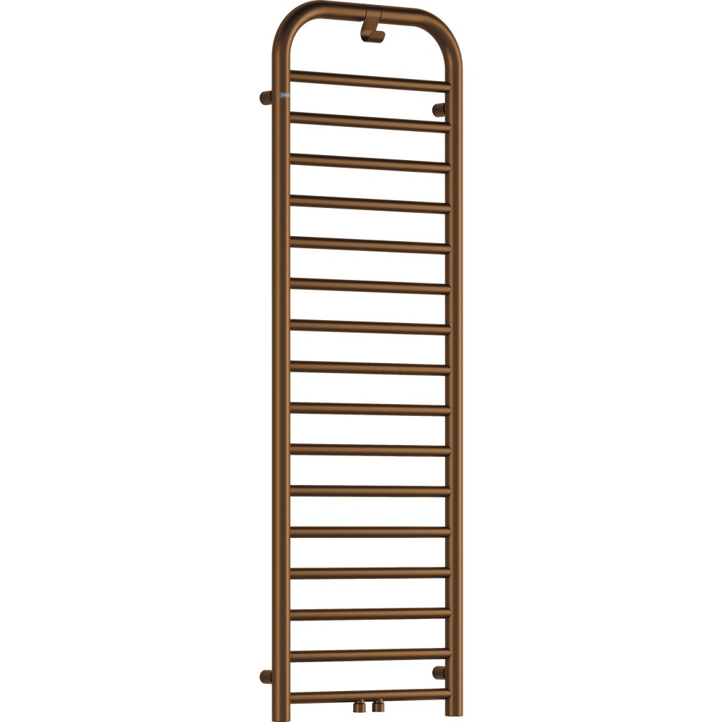 Praktický koupelnový radiátor o rozměrech 1570x500 se vyznačuje zaoblenými tvary a kvalitní povrchovou úpravou v broušené hnědé barvě. Je vybavena praktickým háčkem na ručník nebo župan. Jedná se o hybridní model: vodně-elektrický s možností přidání volitelného 600W ohřívače, který zajistí dodatečný ohřev nebo sušení ručníků mimo topnou sezónu. Pro radiátor je třeba zakoupit ventil. Volitelný ohřívač i potřebný ventil jsou k dispozici ve stejné barvě jako radiátor.