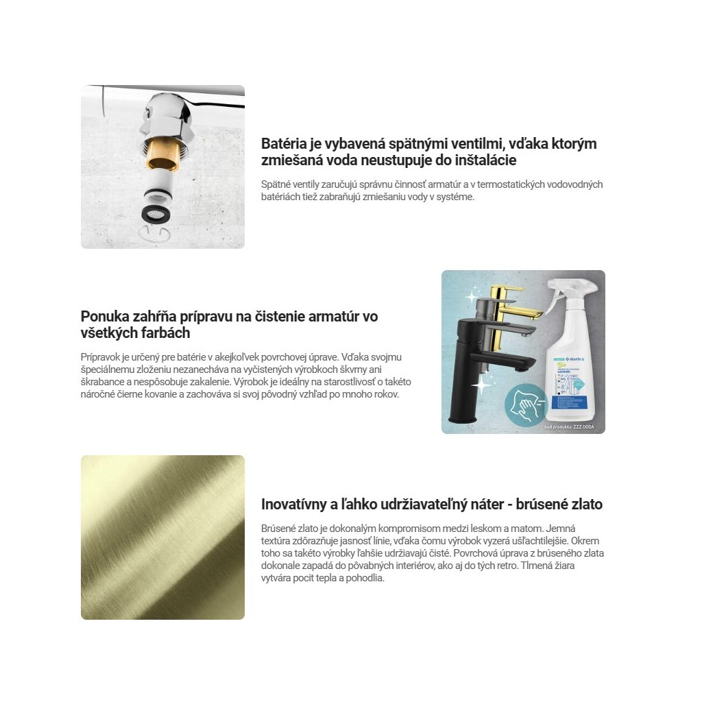 Baterie je vybavena zpětnými ventily, díky kterým smíšená voda neustupuje do instalace