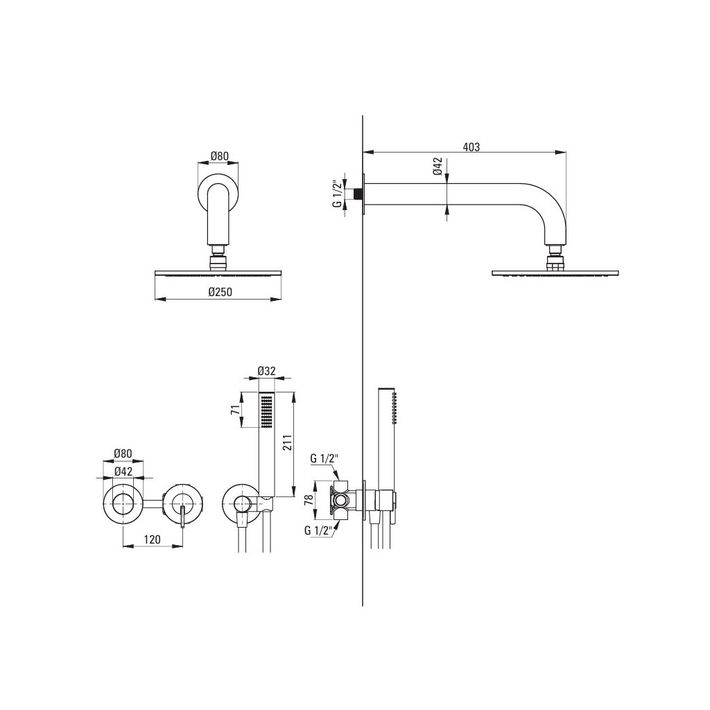 - Typ: podomítková sprchová souprava s ruční a hlavovou sprchou