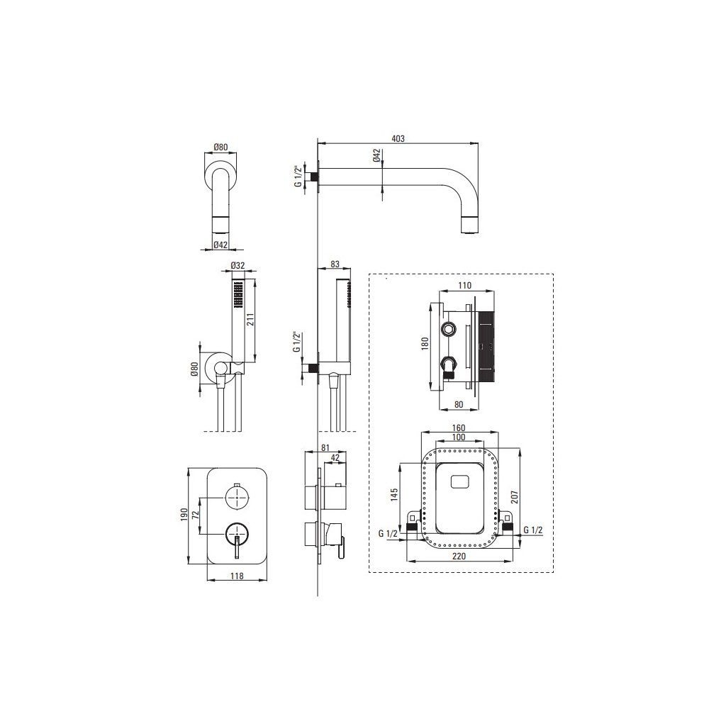 - Typ: sprchová souprava pod omítku s hlavovou a ruční sprchou