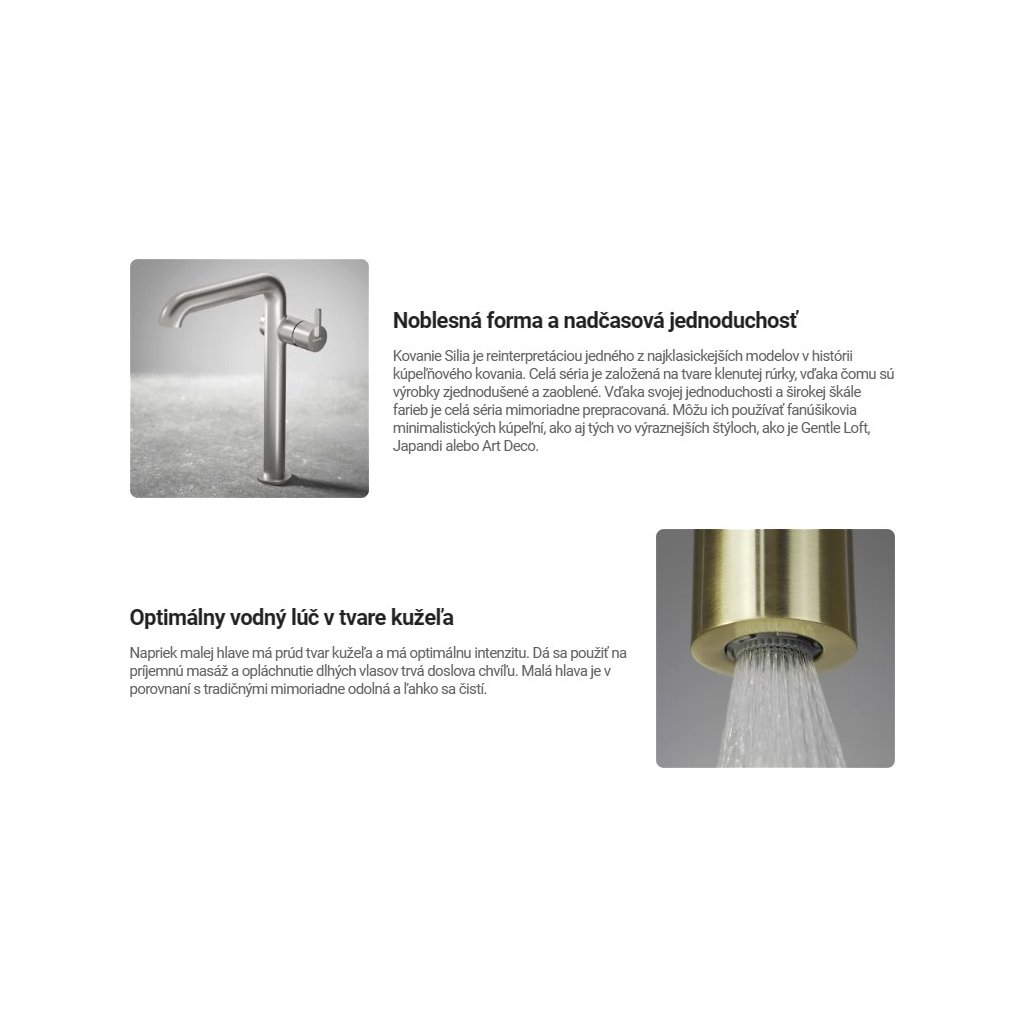 Flexibilní forma a jemný tvar připomínají klasickou trubku, ale moderní design a originální řešení dělají kolekci nad rámec běžných schémat. To, co odlišuje kolekci Silia, je doplňková povaha nabídky. Kolekce obsahuje koupelnová zařízení, keramiku a koupelnové doplňky, které dokonale zdůrazňují styl a konzistenci celé série.