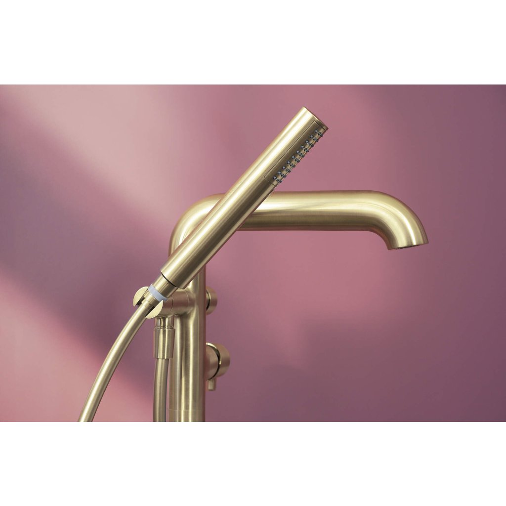 Deante Silia, volně stojící vanová baterie s ruční sprchovou soupravou, zlatá matná, DEA-BQS_R17M