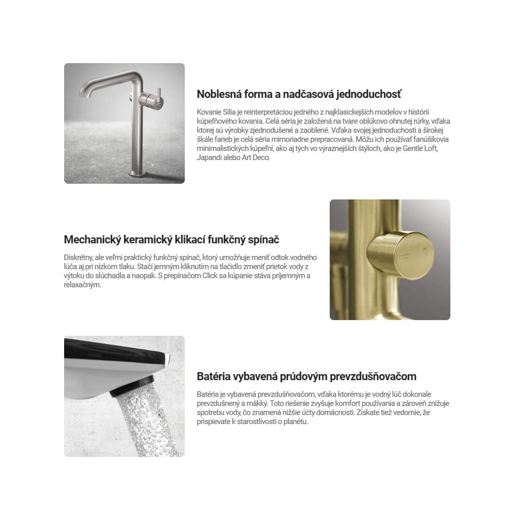 - Páka umístěná na boku usnadňuje udržování výtoku čistého