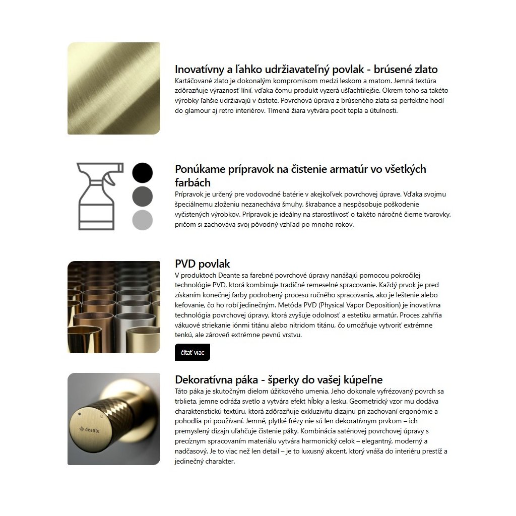 Deante je polská společnost se sídlem v Lodži, která se specializuje na poskytování funkčního a efektivního vybavení koupelen a kuchyní již téměř 30 let. Sortiment výrobce obsahuje více než 1 500 položek včetně vodovodních baterií, umyvadel, sprchových kabin, sprchových vaniček, sprch, koupelnové keramiky a doplňků. Deante produkty a jejich série produktů získávají prestižní ceny, které udělují odborníci na koupelnový design. Mezi ně patří Nábytek Diamond 2019, vítězství v soutěži Top Design Award 2018 a nominace v soutěži Eco-Inspiration.