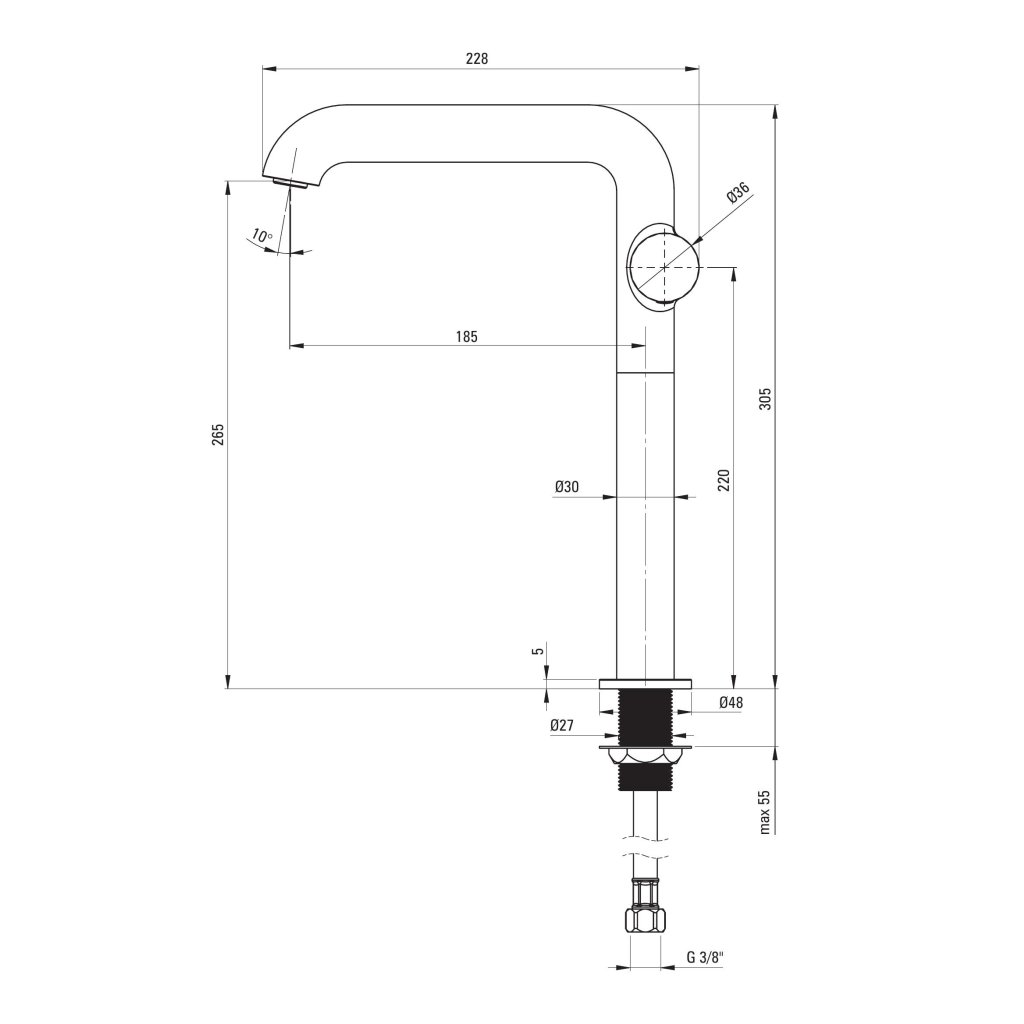 - Typ: vysoká umyvadlová baterie