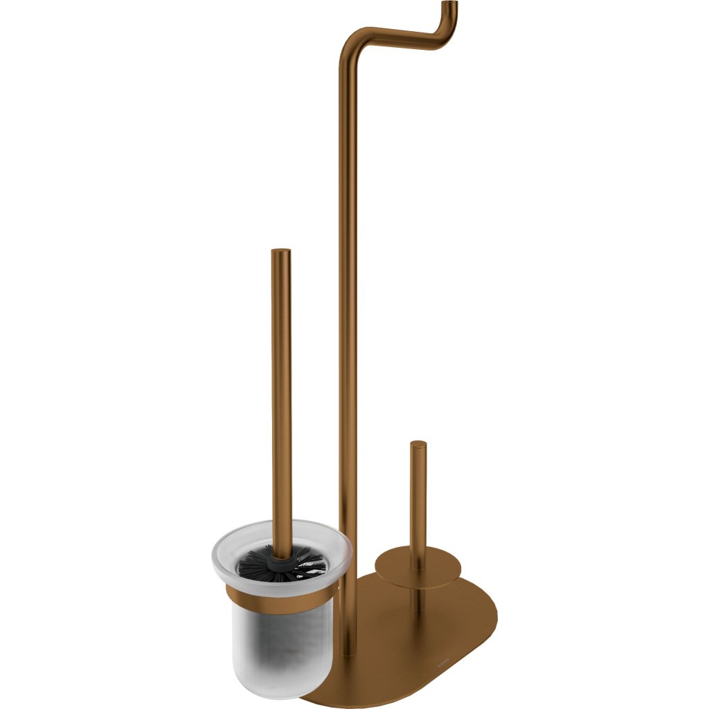 Stojan na toaletní papír Silia je mimořádně praktický a elegantní koupelnový doplněk, který dokonale kombinuje funkčnost s moderním designem. Obsahuje držák na toaletní papír, držák na náhradní kotouč papíru a toaletní kartáč, což znamená, že všechny potřebné prvky jsou vždy po ruce. Stojan je vyroben z kvalitní mosazi, která mu dodává výjimečnou životnost a odolnost vůči vlhkosti. Díky tomu je výrobek robustní a odolný vůči každodennímu používání. Povrchová úprava z broušeného bronzu mu dodává elegantní a moderní vzhled, který dokonale zapadá do současných trendů aranžmá. Dokonale ladí s ostatními prvky kolekce Silia a vytváří v koupelně ucelený a harmonický prostor.