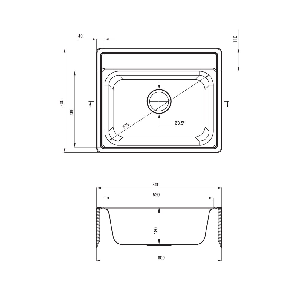 - Typ: nerezový dřez na desku 1-komorový + sifon