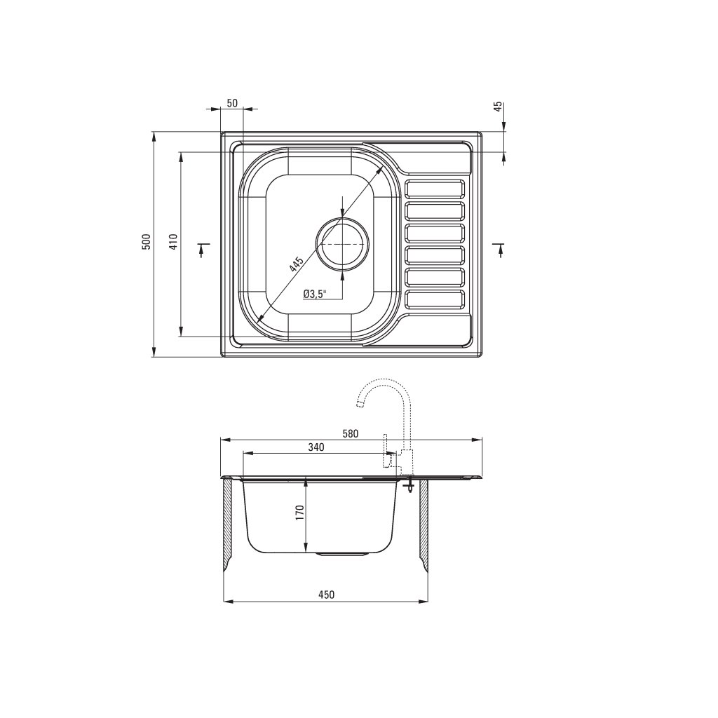 - Typ: nerezový dřez na desku 1-komorový + sifon